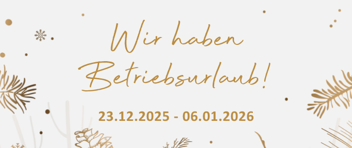 Von Dienstag, 23.12.2025, bis Dienstag, 06.01.2026, sind wir im wohlverdienten Weihnachtsurlaub.