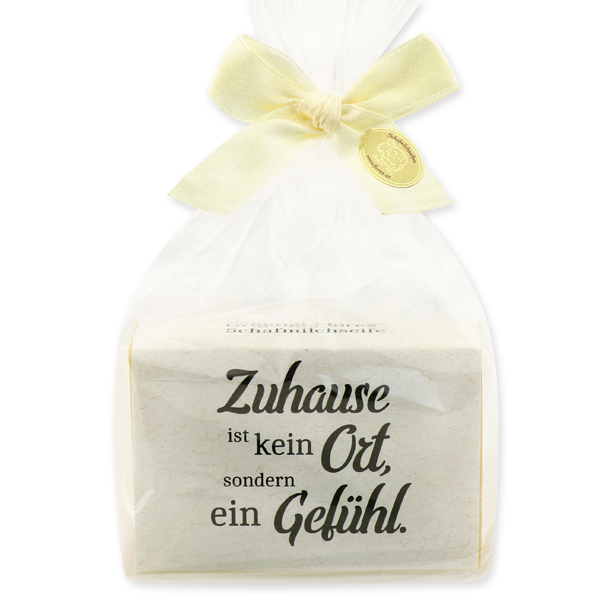 Sheep milk soap 150g packed in a cellophane bag "Zuhause ist kein Ort...", Swiss pine