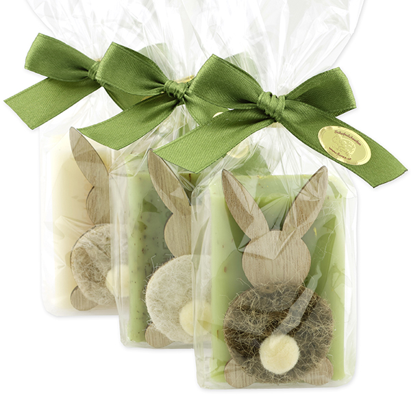 Sheep milk soap 100g decorated with a rabbit in a cellophane, Classic/Verbena/Garden soap
