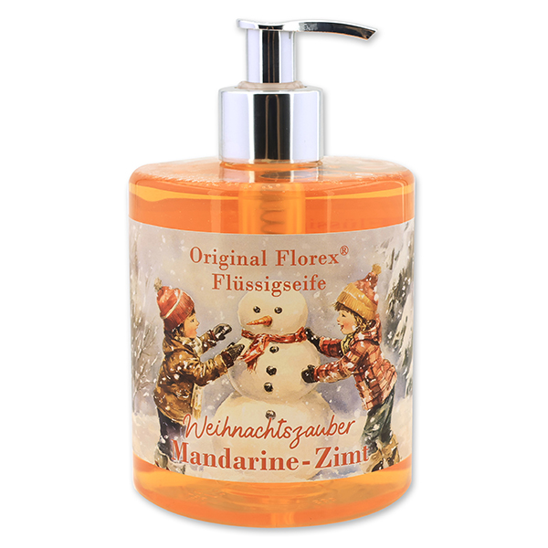 Liquid sheep milk soap 500ml in a dispenser "Christmas magic motif 17", Tangerine-cinnamon