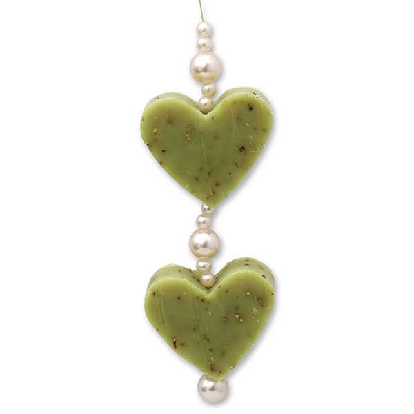 Sheep milk soap heart 2x23g hanging decorated with pearls, Verbena