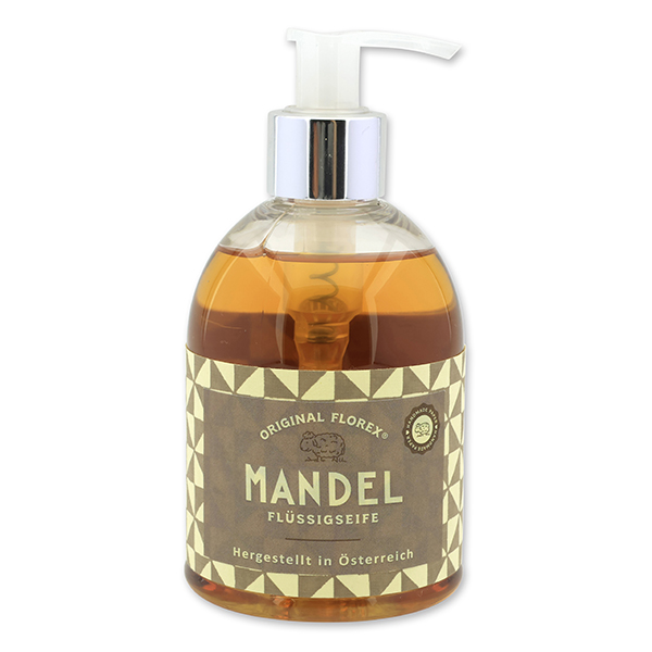 Liquid sheep milk soap 250ml in a dispenser, "Handmade Paper", Almond