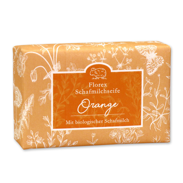 Schafmilchseife eckig liegend 150g "Florentine" im gerillten Papier, Orange