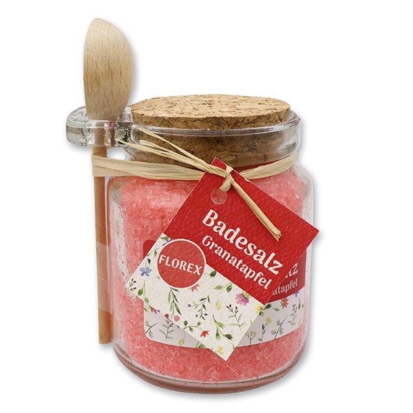 Badesalz 300g im Glas mit Holzlöffel "Von Herzen", Granatapfel