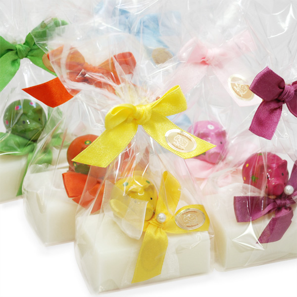 Schafmilchseife eckig 100g dekoriert mit Glücksschwein in Cello, Classic