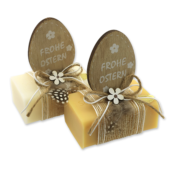 Schafmilchseife eckig 100g dekoriert mit Osterei, Classic/Zirbe