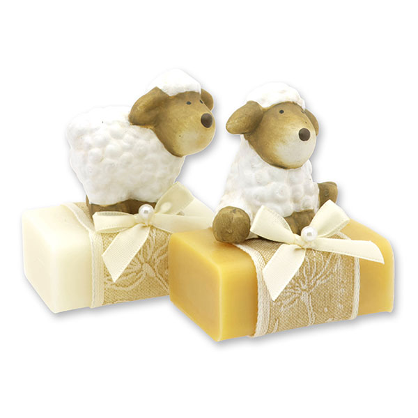 Schafmilchseife eckig 100g dekoriert mit Schaf, Classic/Zirbe