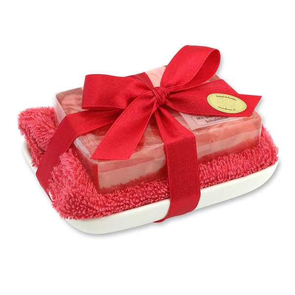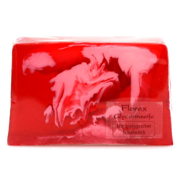 Handgemachte Glyzerin-Seife 90g in Folie auf Seifenschale, Kirsche