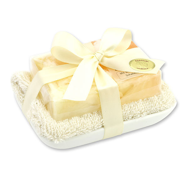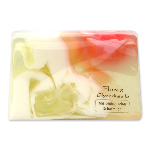 Handgemachte Glyzerin-Seife 90g in Folie auf Seifenschale, Rosentraum