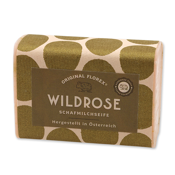 Schafmilchseife eckig 100g, "Handmade Paper" Wildrose mit Blüten