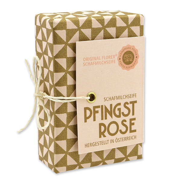 Schafmilchseife eckig 150g "Handmade Paper - Special Edition", Pfingstrose