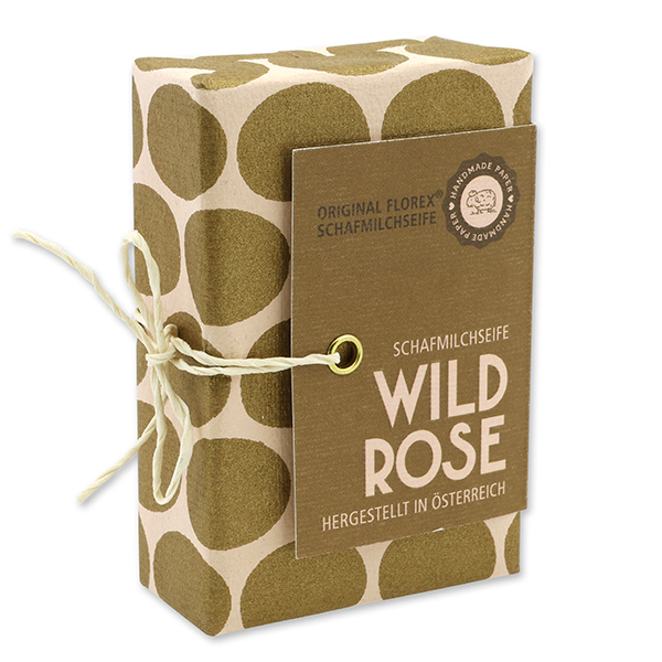 Schafmilchseife eckig 150g "Handmade Paper - Special Edition", Wildrose mit Blüten