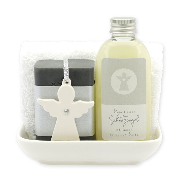 Pflegeset 4-teilig dekoriert mit Schutzengel mit Herz in Cello, Classic/Christrose