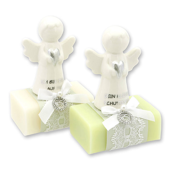 Schafmilchseife eckig 100g dekoriert mit Schutzengel mit Herz, Classic/Wiesenblume