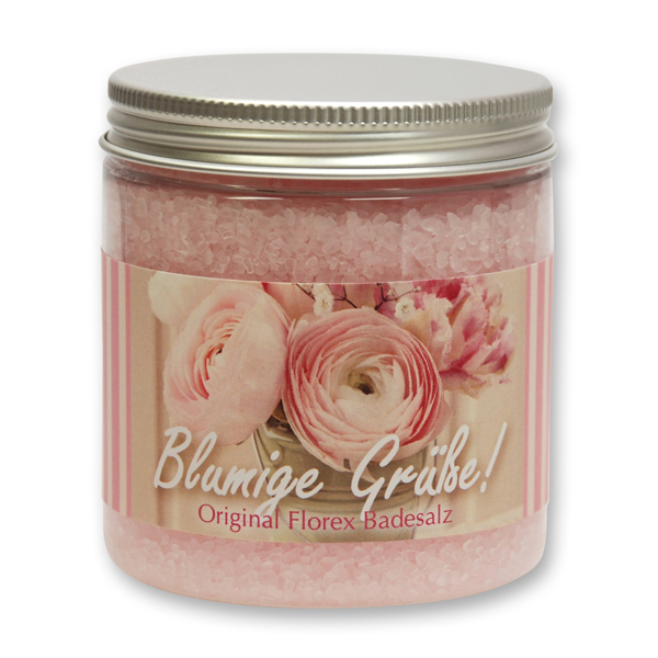 Badesalz 300g in der Dose "Blumige Grüße", Pfingstrose