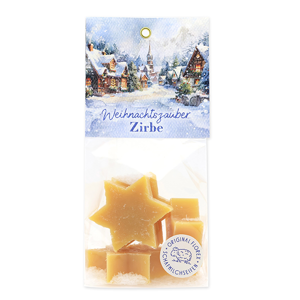 Schafmilchseife Stern midi 4x20g in Cello "Weihnachtszauber-Motiv 3", Zirbe