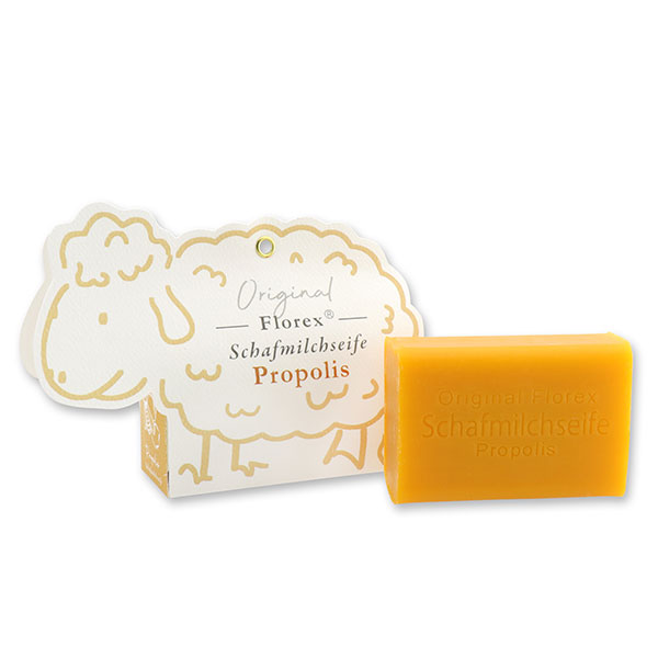 Schafmilchseife eckig 100g in der Schäfchen-Schachtel, Propolis